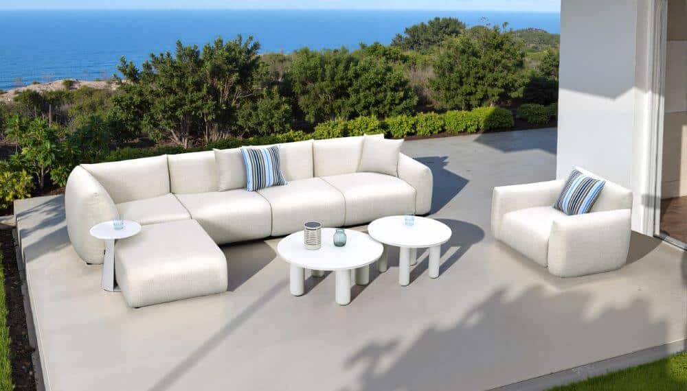 ¿Por qué conformarse con una configuración estática? El corazón de la colección de sofás de exterior Riverside reside en su sistema inteligente y totalmente modular.